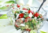 Прекрасный салат из свежих овощей, заправленный йогуртом!