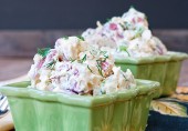 Красный картофель с майонезом, сметаной, горчицей, сельдереем и свежим укропом.