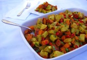 Салат из картофеля и ямса с красным сладким перцем, зеленым луком, кинзой и специями.