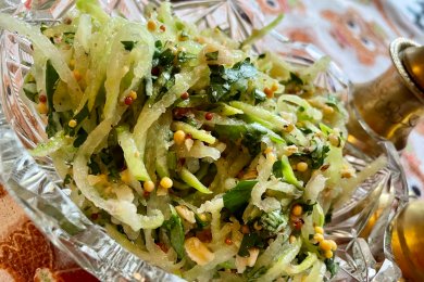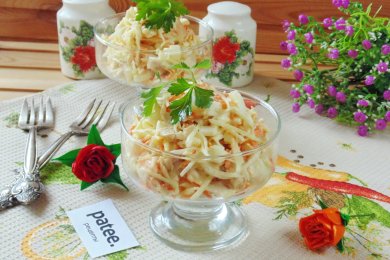 Салат из редьки. Сейчас осень, и время дает нам возможность приготовить блюда из сезонных продуктов. Редька — вкусный, полезный и ароматный продукт, который используют в пищу.