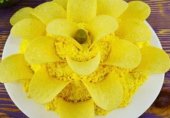 Салат «Хризантема» — это блюдо, которое имеет нежный вкус и интересный внешний вид. Чипсы в салате больше используются для декора и напоминают лепестки цветка.