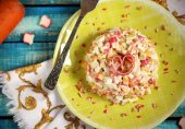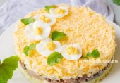 Предлагаю рецепт отличного салата, который подойдет к столу в будни и праздники. По ингредиентам он очень похож на всем известную “Сельдь под шубой” с той разницей, что в нем нет отварной свеклы.