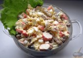 Салат с крабовыми палочками фасолью обладает необычным вкусом.