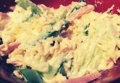 Салат с копчёной куриной грудкой, маринованными шампиньонами, консервированными ананасами и кукурузой, варенными яйцами -сочный, сытный, оригинальный!
