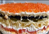 Вкусный новый салат.Обязательно попробуйте на новогодние праздники, это блюдо обещает стать главным сюрпризом застолья.