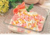 Хочу предложить простой рецепт салата из крабовых палочек, консервированной кукурузы и сухариков, которые можно купить в магазине или приготовить самим.