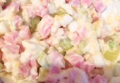 Салат заиграет новыми вкусовыми нотками, если вместо отварных яиц добавить блинчики, приготовленные из смеси яиц и майонеза.