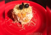 Необычный по вкусу салат,я бы сказала-«на любителя»,лично мне очень понравился.