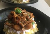 Нежный салат из креветок, зелени, сыра, крабовых палочек, картофеля и яйца. Заправленный майонезом- сметанным соусом.