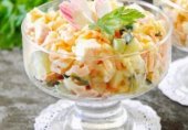 Салат из крабовых палочек с кукурузой, рисом и вареными яйцами - вкусная и очень популярная закуска. Рецепт крабового салата с кукурузой прост в исполнении - салат не требует сложных ингредиентов и готовится достаточно быстро.