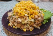 Очень вкусный салат,а солёные огурцы придают ему особую пикантность
