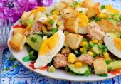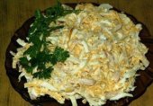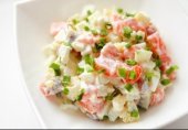 Салат с крабовыми палочками, маринованными грибами и сыром