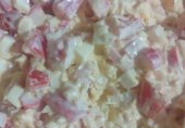 Готовим вкусный салат из крабовых палочек с яблоком, яйцом и консервированной кукурузой! Крабовые палочки- продукт популярный, хотя и весьма спорный.