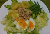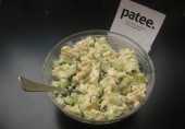 Салат из отварного картофеля с вареными яйцами, сельдереем, луком и майонезом.