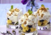 На дворе зима, так что я решила разнообразить свой рацион фруктами. И не важно,что не сезон персиков и ананасов, берем консервированные.
