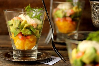Лёгкий, яркий и вкусный салат с креветками и авокадо в стаканах - отличный вариант для праздничной закуски!