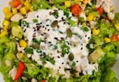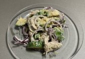 Салат Барракуда с авокадо, креветками и рыбным соусом