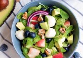 Красивый желтый персик дарит этому салату вкус лета! Но намного лучше то, что в сочетании со сливочным авокадо и черникой, персики становятся вкусным и полезным летним салатом.