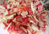 Вкусный, не дорогой, быстрый в приготовлении салат! Очень нежный вкус!