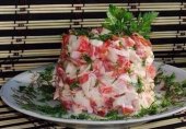 Салатик действительно очень нежный и воздушный.Ингредиенты: - 200 гр крабовых палочек- 200 гр сыра (не острых сортов) - 6 яиц вареных- 30 гр масла сливочного- майонез