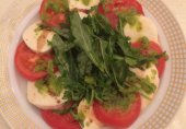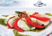 1. Берем сыр моцарелла, сливаем расол, промокаем бумажным полотенцем.2.Нарезаем на части.3.Режем помидор , и слегка подпекаем его с обоих сторон на сковороде без масла.