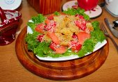 Легкий салат, который можно готовить круглый год. Вкусный, красивый и праздничный. На его приготовление понадобятся считанные минуты.
