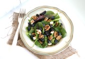 Салат из черники, с зеленью, луком и голубым сыром. Подавать сразу после приготовления.