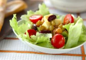 Легкий салат, изумительное сочетание фасоли, сыра и сладкого соуса.