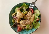 Цей салат особливо корисний для тих, хто уважно слідкує за власною фігурою. Завдяки «Грецькому йогурту» що входить у його склад, страва виходить легкою та поживною водночас