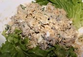 Второй рецепт из серии “Хэллоуин 2015”- салат с курицей, свежими огурцами, яичными белками и чесноком.