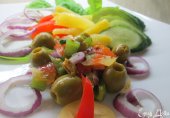 Этот салат можно смело назвать европейским, поскольку именно так принято подавать салаты в Европе. Все ингредиенты нарезаются довольно крупно и выкладываются на блюдо отдельно.