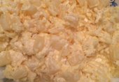 Благодаря ананасу, салат получается сочным, яйца и сыр придают ему сытость, а креветки дают так необходимый нам белок.