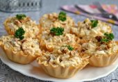 Очень нежный,сочный салатик,который просто и быстро готовится.Не смотря на свою легкость в приготовлении,салат получается очень вкусным!