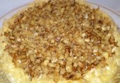 Этот салат делается слоями. Сайра в сочетании с плавленым сыром и ананасом получается очень нежной. Зеленый лук и майонез придают остроту.