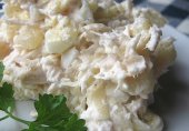 Салат с нежным и восхитительным вкусом, хорошее сочетание ананасов и курицы