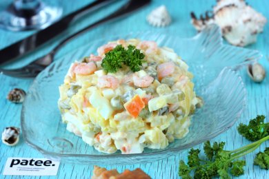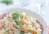 Попробуйте разнообразить классический вкус Оливье, придав ему морской акцент - креветками и вы сразу же получите новый вкус такого знакомого всем салата!