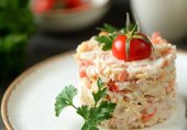 Чтобы после застолья в Новый год оставалось желание танцевать и принять участие в конкурсах, мы нашли для читателей рецепт диетического салата с морепродуктами.