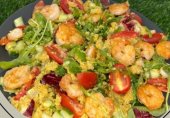 Вкусный королевский салат c креветками, кальмарами, крабовыми палочками, рисом и яичными белками непременно понравится любителям вкусных и не сложных в приготовлении блюд.