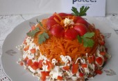 Кальмары очень хорошо сочетаются в салатах как с рыбой и овощами, так и с отварным мясом. В данном рецепте при минимуме ингредиентов гарантирован отличный вкус.