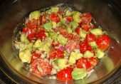 Салат с помидорами черри, авокадо и лимонным соком. Идеально подходит для пикника.
