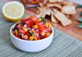 Сальса из свежей клубники с манго, авокадо, перцем халапеньо и зеленью, заправленная соком лайма. Можно подавать ее с рыбой, курицей, свининой или с чипсами.