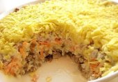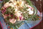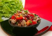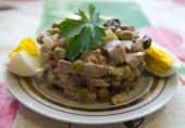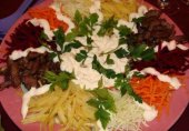 Салат на основе вареных овощей и говядины,с сюрпризом!