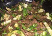 200-250 грамм отварной говядины (берем нежирный кусочек весом грамм 300, отвариваем в подсоленной воде час-полтора),