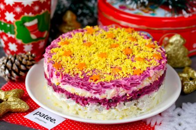 Готовим праздничный салат к Новому году - очень вкусный слоёный салат “Новогодняя ночь”! Этот простой новогодний салат, в состав которого входит картофель, свинина, свекла, сыр, яйца и чернослив, выглядит эффектно, сказочно и нарядно.