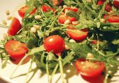 Готовим дома свежий, яркий, полезный ПП салат с рукколой, помидорами черри и свежими огурцами. Классическая салатная заправка на основе оливкового масла и лимонного сока делает диетический салат с рукколой, помидорами черри и огурцами по-весеннему лёгким и очень ароматным.