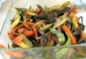 Сальса из спелых персиков с помидорами, сладким перцем, халапеньо и луком, приправленная порошком чили и коричневым сахаром и заправленная соком лайма.