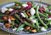 Вкусный и полезный салат из зеленой фасоли с эндивием, заправленный лимонным соком с чесноком и оливковым маслом и посыпанный грецкими орехами и сыром фета.