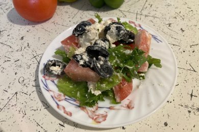 Это салат 🥗 облегчённая версия греческого салата, он лёгкий для вашего желудка и очень быстр в приготовлении.