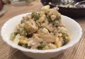 Нежный салат. А благодаря печени минтая полезный: богат минеральными веществами и микроэлементами. Особенным этот салат делает обжаренный лучок.