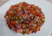 Обычно этот хорошо известный и всеми любимый салат готовят слоями, но я предлагаю рецепт ленивой “Селедки под шубой”.